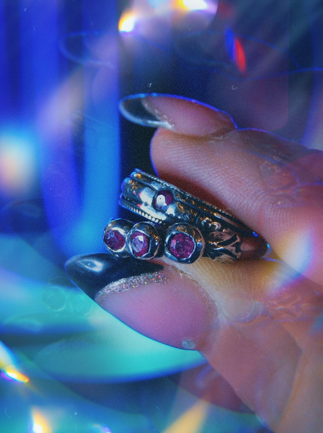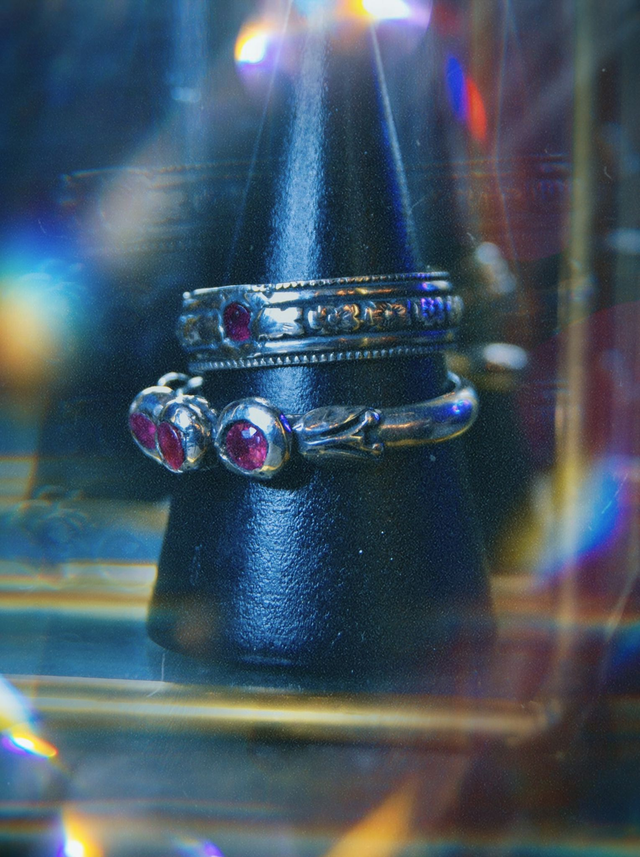 Ruby Berries & Leaves Detailed Ring